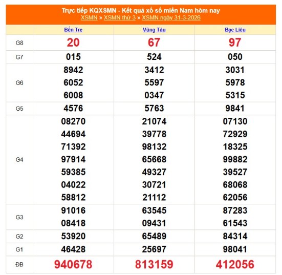 Kết quả xổ số miền Nam ngày 31/3/2026
