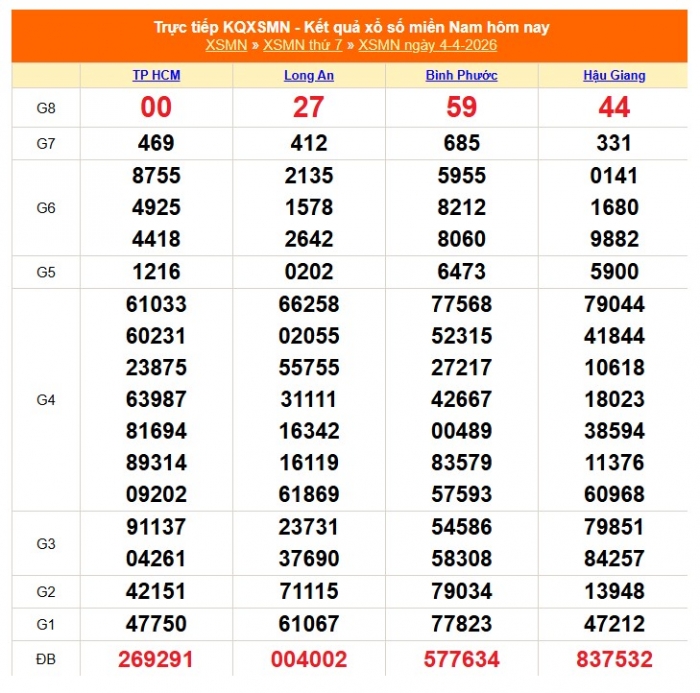 Kết quả xổ số miền Nam ngày 4/4/2026