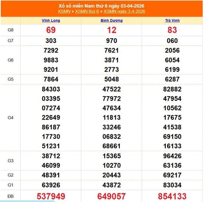 Kết quả xổ số miền Nam ngày 3/4/2026