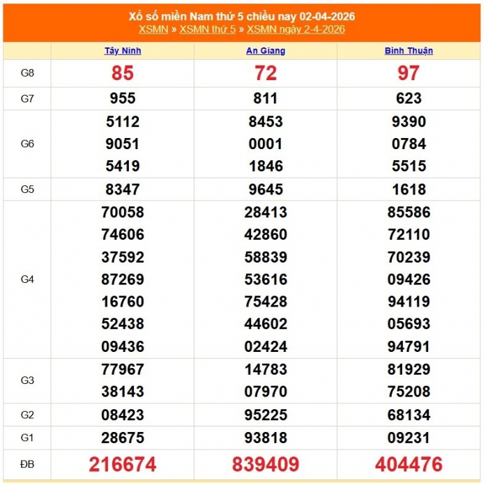 Kết quả xổ số miền Nam ngày 2/4/2026