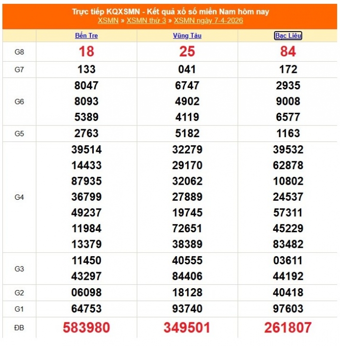 Kết quả xổ số miền Nam ngày 7/4/2026