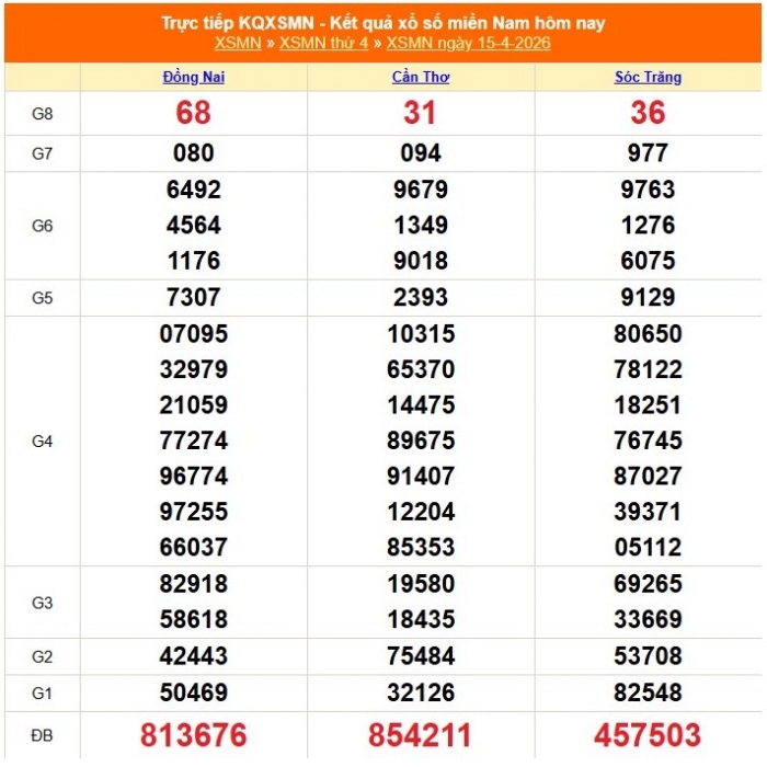 Kết quả xổ số miền Nam ngày 15/4/2026