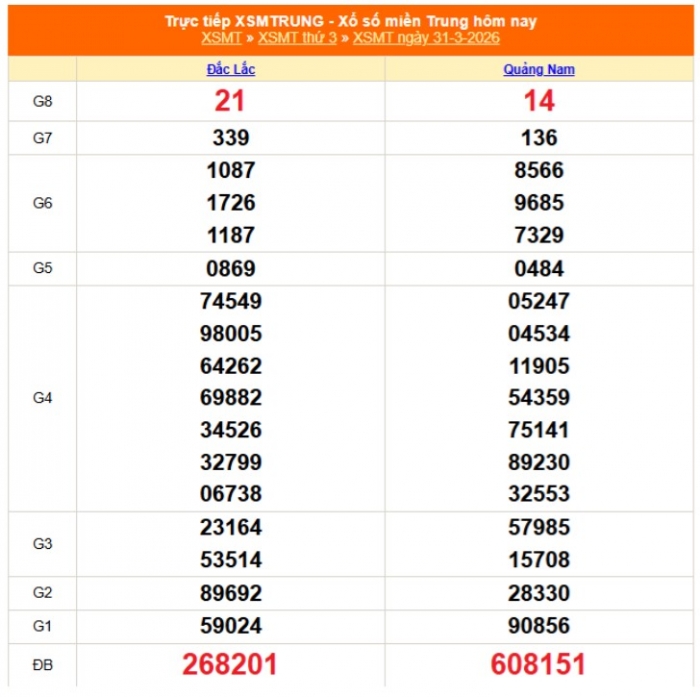 Kết quả xổ số miền Trung ngày 31/3/2026