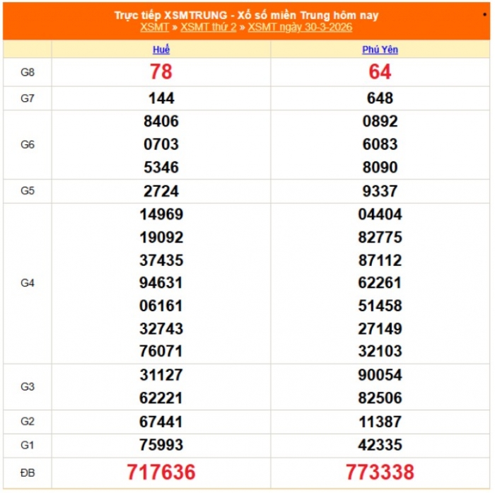 Kết quả xổ số miền Trung ngày 30/3/2026