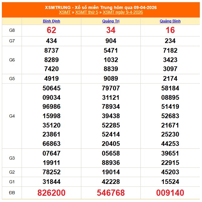 Kết quả xổ số miền Trung ngày 9/4/3/2026