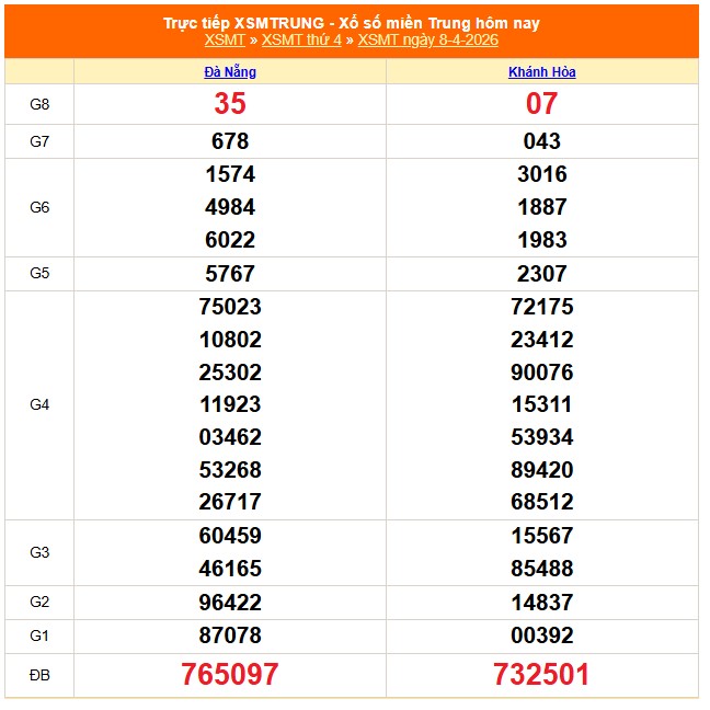Kết quả xổ số miền Trung ngày 8/4/3/2026