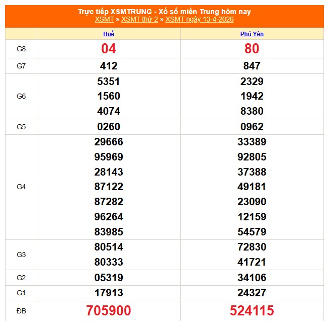 Kết quả xổ số miền Trung ngày 13/4/3/2026