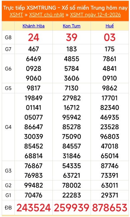 Kết quả xổ số miền Trung ngày 12/4/3/2026