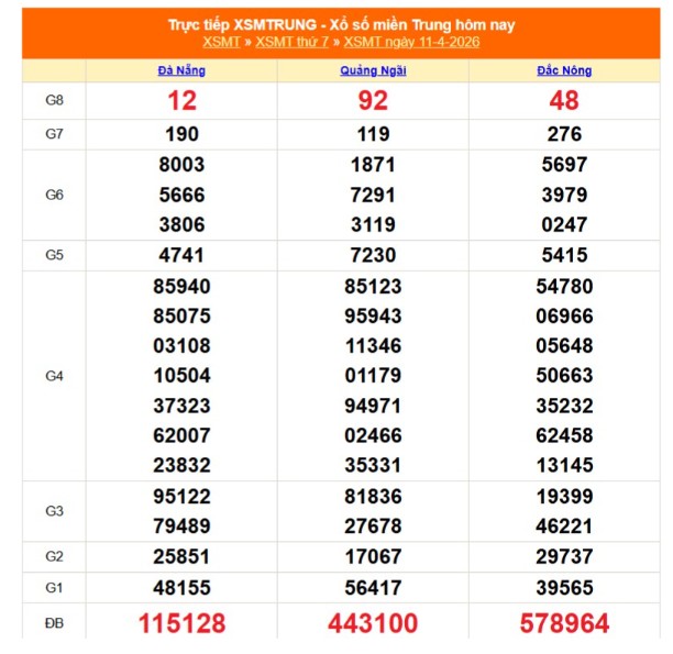Kết quả xổ số miền Trung ngày 11/4/3/2026