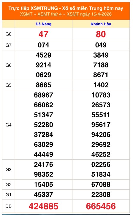 Kết quả xổ số miền Trung ngày 15/4/3/2026