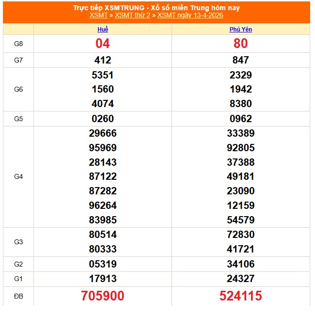 Kết quả xổ số miền Trung ngày 13/4/3/2026