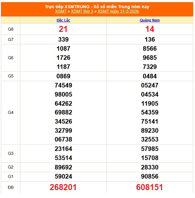 Kết quả xổ số miền Trung ngày 31/3/2026