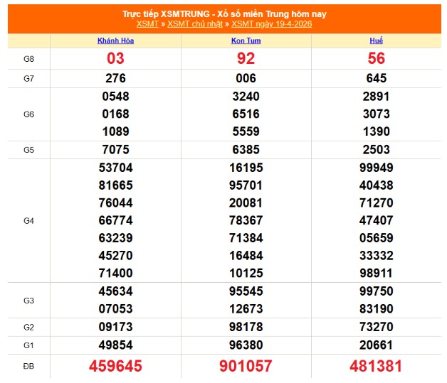 Kết quả xổ số miền Trung (XSMT) ngày 20/4/2026 được quay số trực tiếp vào lúc 17h15 mỗi ngày, dưới sự giám sát chặt chẽ nhằm đảm bảo tính minh bạch và công bằng. Chương trình quay số được phát sóng trên các đài truyền hình địa phương, đồng thời được cập nhật liên tục trên nhiều website và nền tảng trực tuyến uy tín, giúp người chơi dễ dàng theo dõi dù ở bất kỳ đâu. Nhờ sự phát triển của công nghệ, người chơi hiện nay có thể tra cứu kết quả nhanh chóng chỉ với vài thao tác đơn giản trên điện thoại hoặc máy tính.