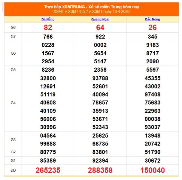 Kết quả xổ số miền Trung ngày 18/4/3/2026