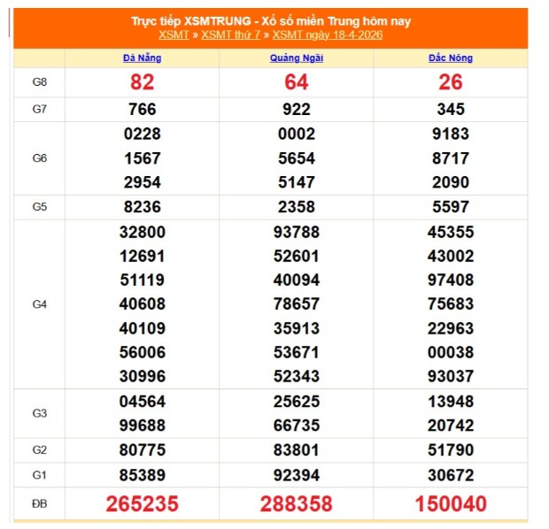 Kết quả xổ số miền Trung ngày 18/4/3/2026