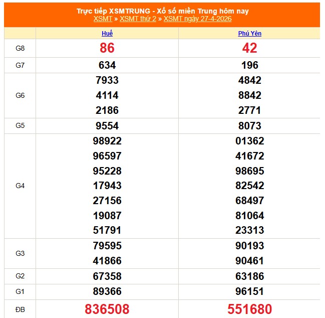 Kết quả xổ số miền Trung ngày 27/4/3/2026