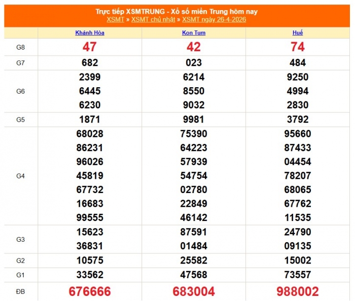 Kết quả xổ số miền Trung ngày 26/4/3/2026