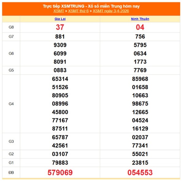 Kết quả xổ số miền Trung (XSMT) ngày 4/4/2026 được quay số trực tiếp vào lúc 17h15 mỗi ngày, dưới sự giám sát chặt chẽ nhằm đảm bảo tính minh bạch và công bằng. Chương trình quay số được phát sóng trên các đài truyền hình địa phương, đồng thời được cập nhật liên tục trên nhiều website và nền tảng trực tuyến uy tín, giúp người chơi dễ dàng theo dõi dù ở bất kỳ đâu. Nhờ sự phát triển của công nghệ, người chơi hiện nay có thể tra cứu kết quả nhanh chóng chỉ với vài thao tác đơn giản trên điện thoại hoặc máy tính.
