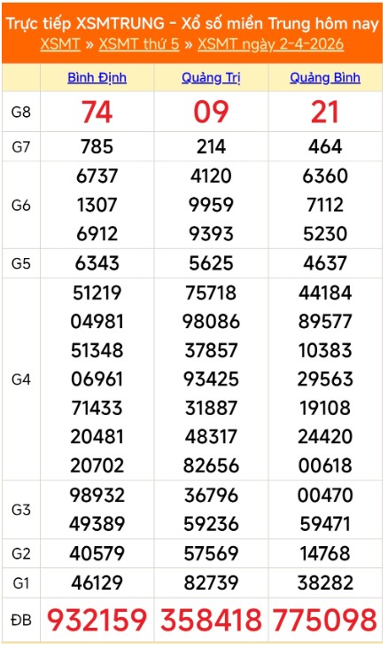 Kết quả xổ số miền Trung ngày 2/4/3/2026
