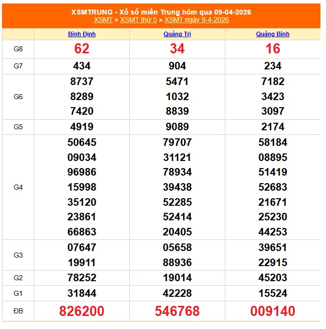 Kết quả xổ số miền Trung ngày 9/4/3/2026