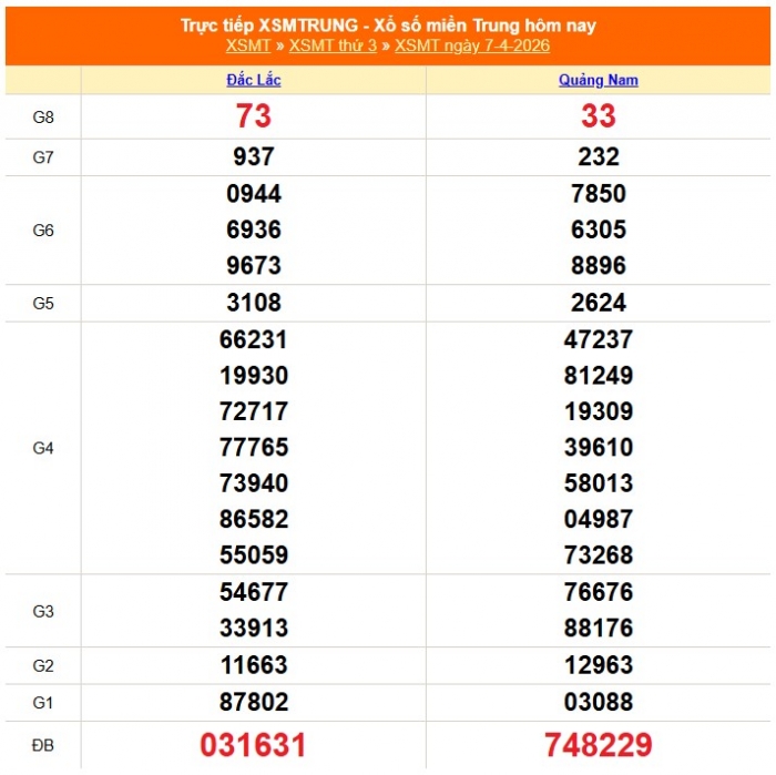Kết quả xổ số miền Trung ngày 7/4/3/2026