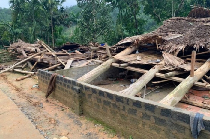 Theo đó, vào khoảng 22h ngày 28/4/2026, tại xã Nam Xuân bất ngờ xuất hiện mưa lớn kèm dông lốc mạnh, gió giật dữ dội trong thời gian ngắn nhưng đủ sức gây ra thiệt hại nghiêm trọng. Cơn giông xảy ra vào thời điểm đêm muộn khiến nhiều người không kịp trở tay, trong đó một căn nhà sàn của người dân tại bản Cua đã bị đổ sập hoàn toàn chỉ trong tích tắc.