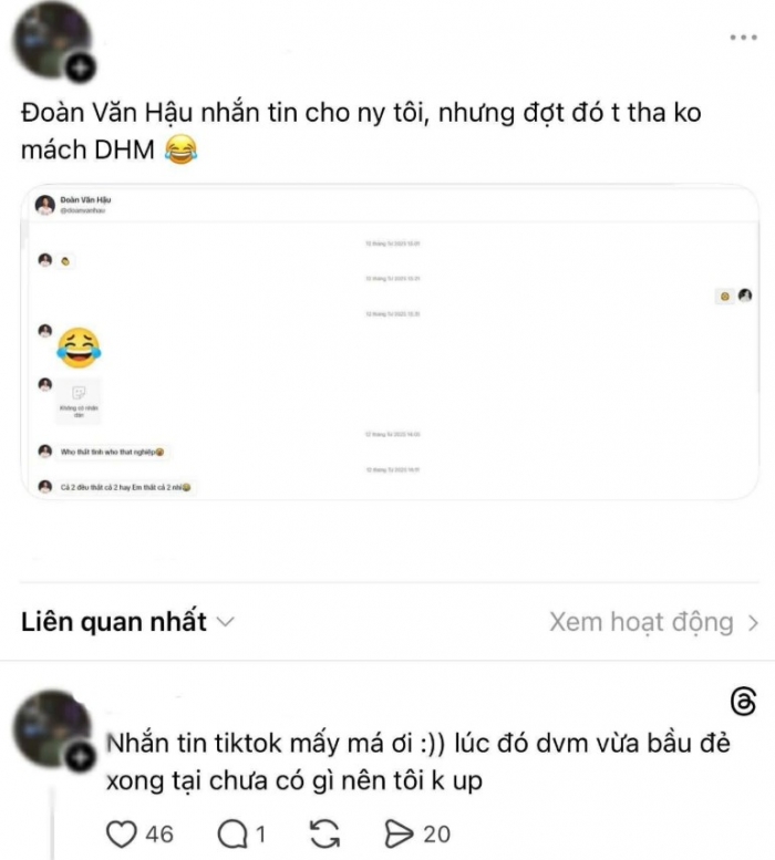 Những giờ qua, cộng đồng mạng liên tục bàn tán về một loạt ảnh chụp màn hình tin nhắn được cho là của Đoàn Văn Hậu. Nội dung các bài đăng lan truyền cho thấy một tài khoản mang tên và hình đại diện của nam cầu thủ đã chủ động nhắn tin bắt chuyện với một cô gái. Câu chuyện trở nên căng thẳng hơn khi một người được cho là bạn trai của cô gái này lên tiếng, cho rằng bạn gái mình bị “làm phiền” dù người nhắn đã có gia đình.
