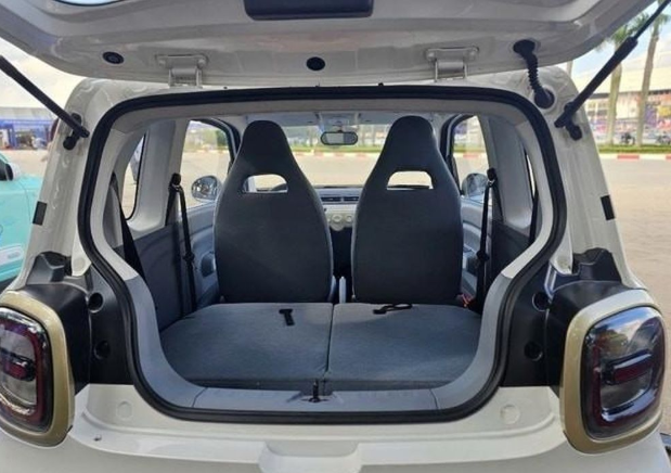 Dù nhỏ gọn, mẫu xe này vẫn được bố trí 4 chỗ ngồi, thay vì cấu hình 2 chỗ như nhiều micro EV khác. Trần xe cao, diện tích kính lớn giúp khoang cabin không quá bí bách. Hàng ghế sau phù hợp cho trẻ em hoặc người lớn di chuyển quãng ngắn trong đô thị. Không gian hành lý ở mức cơ bản, đủ dùng cho balo, túi xách, đồ đi chợ – đúng với nhu cầu đi lại hằng ngày.