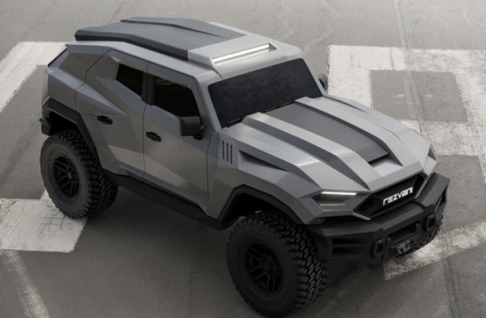 So với thế hệ tiền nhiệm, Rezvani Tank 2026 sở hữu ngoại hình hoàn toàn mới với phong cách quân sự rõ nét hơn. Thân xe được tạo hình vuông vức, góc cạnh, các mảng giáp lớn và chi tiết thiết kế mang đậm hơi hướng xe bọc thép, tạo cảm giác như một “pháo đài di động” sẵn sàng chinh phục mọi địa hình khắc nghiệt từ sa mạc, rừng núi cho tới môi trường chiến sự.