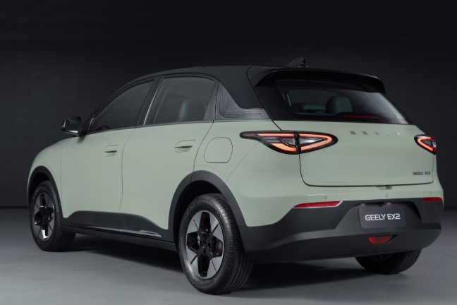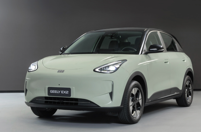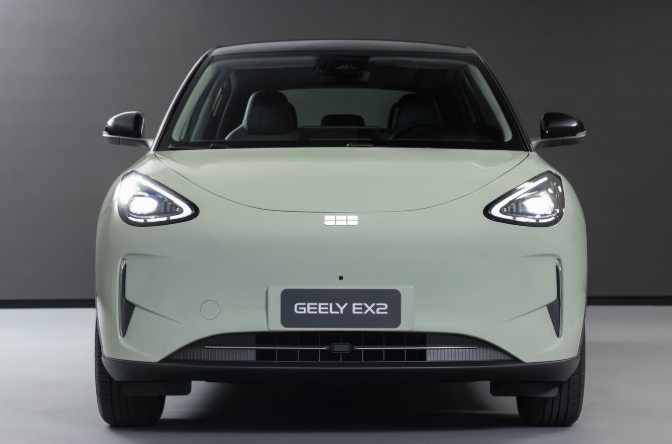 Geely EX2, tên gọi khác là Geome Xingyuan tại Trung Quốc, sở hữu thiết kế bo tròn chủ đạo với các đường nét mềm mại. Cụm đèn chiếu sáng LED dạng oval tích hợp đèn định vị tạo điểm nhấn phía trước. Tay nắm cửa bán ẩn giúp cải thiện tính khí động học, kết hợp bộ mâm phay kích thước 16 inch mang phong cách hiện đại.