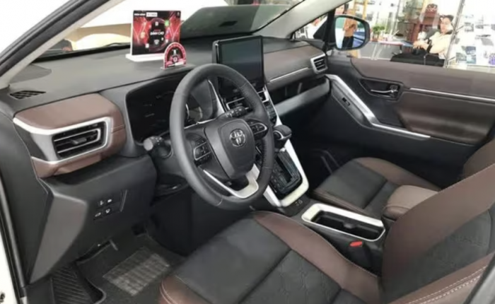 Khoang cabin được bố trí theo cấu hình 6 chỗ ở bản HEV, với hai ghế độc lập ở hàng giữa. Ghế có bệ tỳ tay riêng và chỉnh điện phần đỡ bắp chân. Xe trang bị màn hình trung tâm 10,1 inch hỗ trợ Apple CarPlay và Android Auto, màn hình kỹ thuật số 7 inch, phanh tay điện tử tích hợp giữ phanh tự động, cửa sổ trời toàn cảnh và điều hòa tự động hai vùng.
