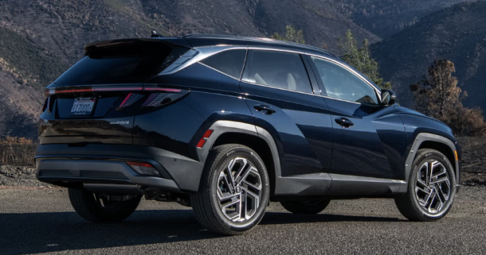 Về thiết kế, Hyundai Tucson Hybrid 2026 không thay đổi nhiều so với các phiên bản đang bán. Xe vẫn giữ phong cách góc cạnh đặc trưng với lưới tản nhiệt Parametric Hidden Light tích hợp đèn định vị, cản trước và sau hầm hố cùng bộ mâm hợp kim 18 inch. Đây là kiểu thiết kế đã quen thuộc, tạo nên bản sắc riêng cho Tucson trong phân khúc.