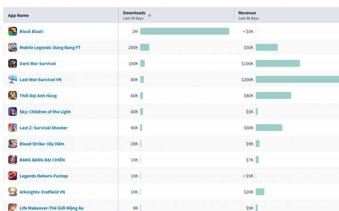 Block Blast đang nổi lên như một hiện tượng trong làng game mobile khi ghi nhận hơn 2 triệu lượt tải tại Việt Nam chỉ trong 30 ngày, vượt xa nhiều tựa game đình đám như Mobile Legends hay Last War. Tuy nhiên, trái ngược với độ phổ biến, doanh thu in-app của trò chơi lại khá khiêm tốn, chưa tới 5.000 USD. Đây không phải là dấu hiệu thất bại, mà ngược lại phản ánh đúng bản chất của dòng game hyper-casual – nơi doanh thu không đến từ người chơi nạp tiền mà chủ yếu đến từ quảng cáo.