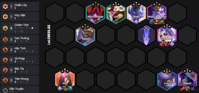 Đội hình Xayah – Chiêm Tinh là bài fast 8 cơ bản, xoay quanh cơ chế chòm sao độc đáo. Nhánh Chiêm Tinh Ngọn Núi dễ chơi nhất khi cung cấp Ấn và nhiều chỉ số cho các chủ lực như Shen, Riven, Jhin, giúp tối ưu đội hình. Tuy không quá “bá đạo”, đội hình cần giữ máu đầu game bằng cách ghép đồ sớm hoặc chọn lõi giao tranh, sau đó fast 8–9 để ổn định top 4.