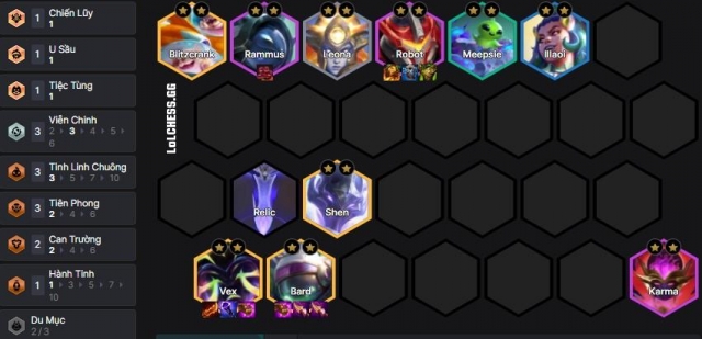 Đội hình phổ biến xoay quanh khung Tinh Linh Chuông gồm Meepsie, Bard, Rammus, Lữ Hành (Robot), Karma, Shen và Blitzcrank để kích hệ Can Trường và Tiên Phong.