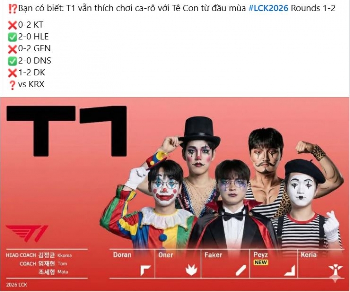 Bên cạnh sự biến động lên xuống liên tục của giá vàng trong khoảng thời gian gần đây, có một cái tên thi đấu tại LCK 2026 cũng đang thể hiện phong độ tương tự. Đó chính là T1, khi họ đang có chuỗi trận thắng thua đan xen nhau tại LCK và chuỗi trận này lại tiếp tục nối dài khi mới đây nhất, T1 lại tiếp tục để thua DK ở trận đấu tâm điểm của tuần 3 LCK 2026 Rounds 1-2.