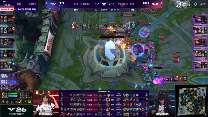 DK tiếp tục thể hiện sức mạnh vượt trội ở ván 1 khi duy trì phong độ ổn định đầu trận, khiến cả T1 cũng không thể phá “lời nguyền ván 1” như Gen.G hay KT trước đó. Họ kiểm soát bản đồ chặt chẽ, tạo áp lực liên tục nhờ di chuyển tốt của các đường đơn. Dù T1 có những pha đáp trả, chênh lệch về nhịp độ khiến họ dần bị cuốn theo lối chơi của DK. Không cần snowball mạnh, DK vẫn áp đảo nhờ kiểm soát tầm nhìn và macro, qua đó giành chiến thắng thuyết phục.
