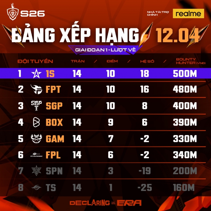 Sau hơn 1 tháng khởi tranh, giai đoạn 1 của giải đấu đã kết thúc và các đội tuyển cũng đã tận dụng rất tốt cơ chế thưởng mới để kiếm về cho mình số tiền thưởng lên tới hàng trăm triệu đồng khi mà mùa giải còn chưa kết thúc. Trong đó cao nhất là OneStar Esports đã tích lũy được con số thưởng lên tới 500 triệu đồng sau khi kết thúc giai đoạn này.