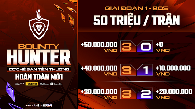 Tại giai đoạn 1, mỗi trận BO5 có tổng giá trị thưởng 50 triệu đồng. Đội thắng 3-0 nhận trọn 50 triệu đồng. Nếu thắng 3-1, đội thắng nhận 40 triệu đồng và đội thua nhận 10 triệu đồng. Trường hợp thắng 3-2, đội thắng nhận 30 triệu đồng và đội thua nhận 20 triệu đồng. Cơ chế này buộc các đội duy trì quyết tâm đến ván đấu cuối cùng, hạn chế tình trạng buông xuôi khi bị dẫn trước bởi kể cả khi thua chung cuộc, các đội tuyển vẫn có cơ hội tích lũy tiền thưởng nếu có được từ 1 cho tới 2 ván thắng.