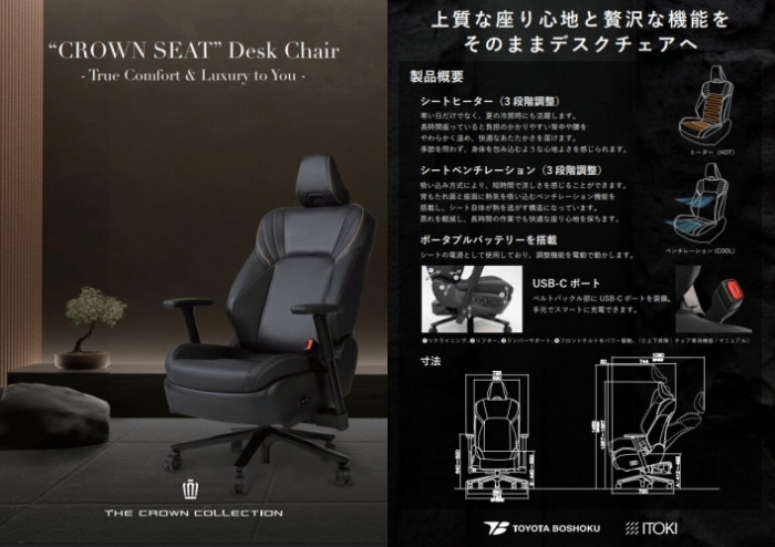 Mới đây, công ty con Toyota Boshoku - đơn vị chuyên thiết kế và sản xuất nội thất ô tô - vừa giới thiệu mẫu ghế “Crown Seat Desk Chair” (gọi tắt là “Crown Chair”), được phát triển dựa trên phần ghế trước chỉnh điện của chiếc xe Toyota Crown. Sản phẩm được bán giới hạn 70 chiếc tại Nhật Bản, với mức giá 3.500 USD (khoảng 92.3 triệu đồng), tương đương khoảng 10% giá khởi điểm của một chiếc Toyota Crown.