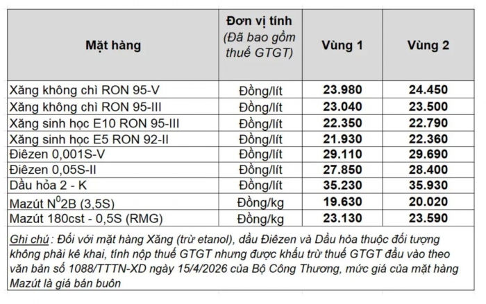 Cập nhật bảng giá xăng dầu Petrolimex mới nhất hôm nay 22/4: Giá xăng dầu tiếp tục được điều chỉnh giảm mạnh từ 16h chiều qua, giá xăng E5 RON92 cao nhất 21.934 đồng/lít, giá xăng RON95 cao nhất 23.042 đồng/lít, giá dầu diesel cao nhất 27.856 đồng/lít, giá dầu mazut tối đa 19.631 đồng/kg.