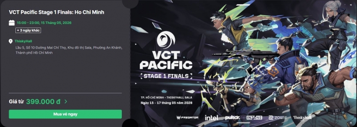 Vòng Chung Kết giải đấu VCT Pacific Stage 1 tổ chức tại TP Hồ Chí Minh vào tháng 5 tới đã chính thức mở bán vé vào ngày hôm nay và nhanh chóng nhận được sự quan tâm từ phía người hâm mộ.