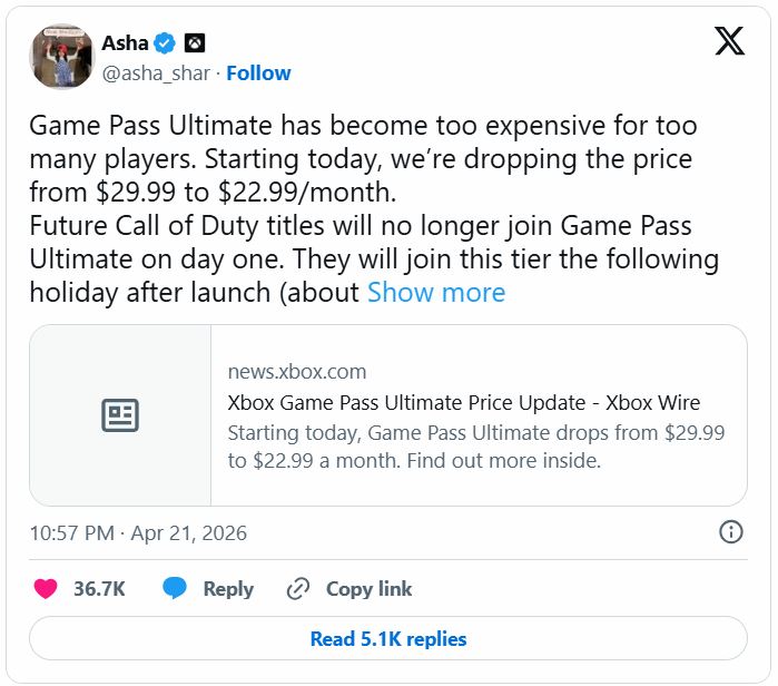 Theo hãng, cộng đồng game thủ Xbox có nhu cầu rất đa dạng ở nhiều khu vực khác nhau, và dù không có giải pháp nào phù hợp với tất cả mọi người, thay đổi lần này là phản hồi trước các góp ý mà hãng đã thu thập được. Microsoft cũng khẳng định sẽ tiếp tục lắng nghe người dùng trong thời gian tới. Việc giảm giá chắc chắn là tin vui, nhưng việc Call of Duty mất đặc quyền day-one có thể sẽ tạo ra tranh cãi lớn trong cộng đồng Game Pass.