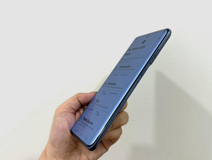 Tấm nền p-OLED trên Edge 60 Fusion mang đến màu sắc rực rỡ, độ sáng cao và độ tương phản tốt, hiển thị rõ ngay cả ngoài trời nắng mạnh. Độ phân giải 1.5K vượt trội so với Full HD+ truyền thống, giúp nội dung hiển thị sắc nét từ chữ viết, giao diện ứng dụng, phim 4K cho đến game đồ họa cao. Màn hình cong bốn cạnh tạo cảm giác “vô viền” nhưng người dùng cần làm quen với việc vuốt sát mép để tránh bấm nhầm. Một số biến thể còn có chứng nhận màu Pantone, đảm bảo độ chính xác màu cao, phù hợp cho người chỉnh ảnh, quay video bằng điện thoại hoặc yêu cầu màu sắc trung thực.