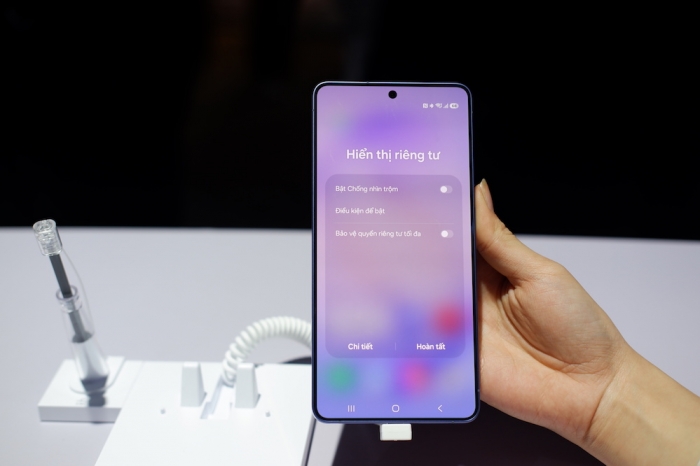 Một cải tiến bảo mật đáng chú ý trên Galaxy S26 Ultra là tính năng Privacy Display. Công nghệ này kiểm soát hướng ánh sáng từ điểm ảnh để nội dung chỉ hiển thị rõ khi nhìn trực diện, trong khi người xung quanh sẽ chỉ thấy màn hình tối đi và không thể đọc được. Khác với miếng dán chống nhìn trộm, Privacy Display vẫn giữ được độ sắc nét của hình ảnh.