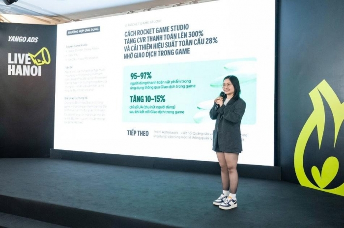 Chi Thư Nguyễn, Business Development Manager tại Yango Ads, chia sẻ những góc nhìn về các thách thức trong việc gia tăng doanh thu mà các studio ứng dụng Việt Nam đang đối mặt tại sự kiện Live Hanoi 2026.